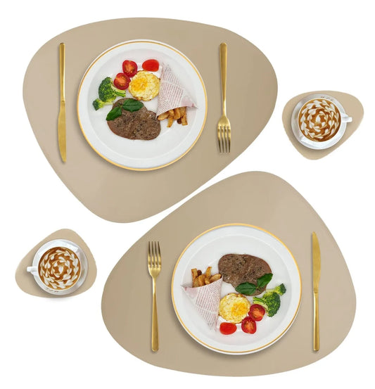 Tropfenförmige Teller- und Glasuntersetzer aus Kunstleder im Set