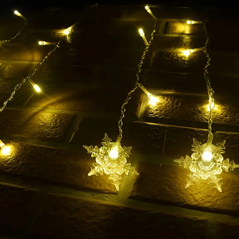 Die zarten, leuchtenden Flocken erzeugen ein warmweißes Licht, das jeden Raum in eine gemütliche Winterlandschaft verwandelt – perfekt für Fenster, Wände oder den Weihnachtsbaum.